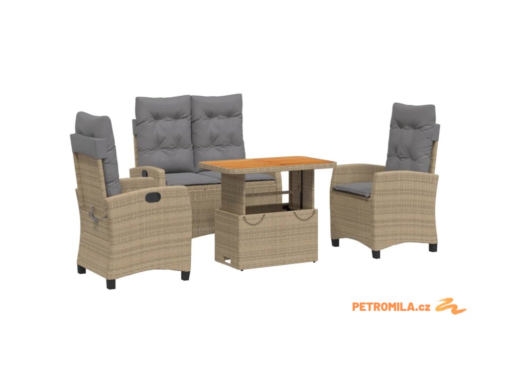 4dílný zahradní jídelní set s poduškami béžový polyratan