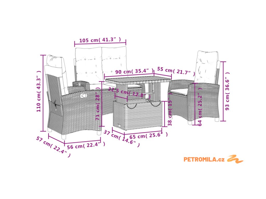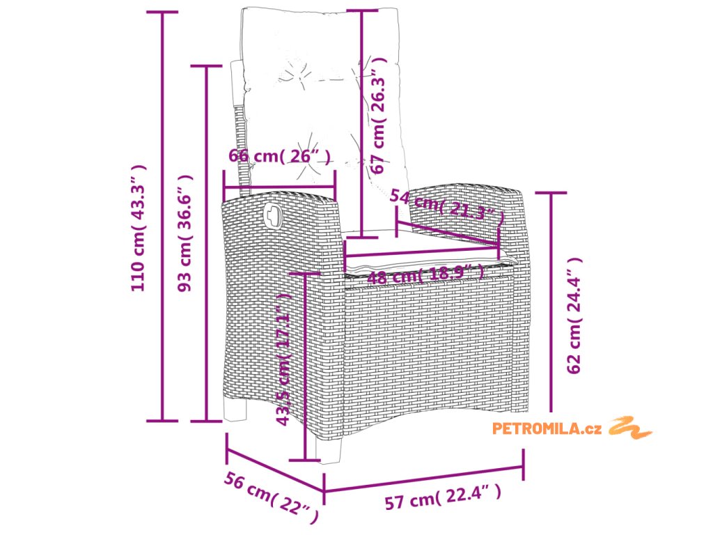 - Rozměry při poloze vsedě: 57 x 66 x 93 cm (Š x H x V)
