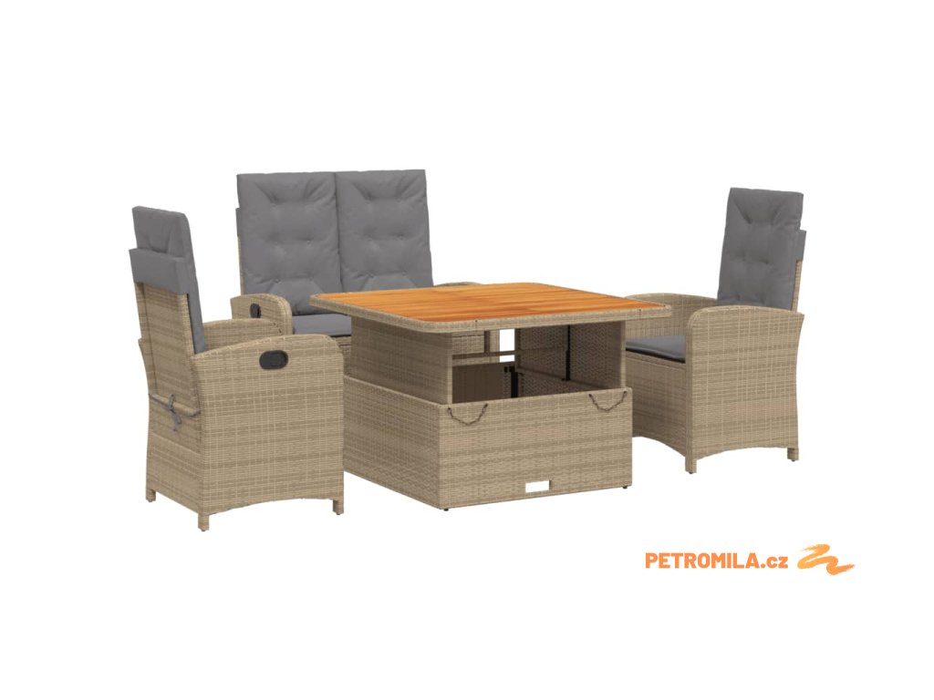 4dílný zahradní jídelní set s poduškami béžový polyratan
