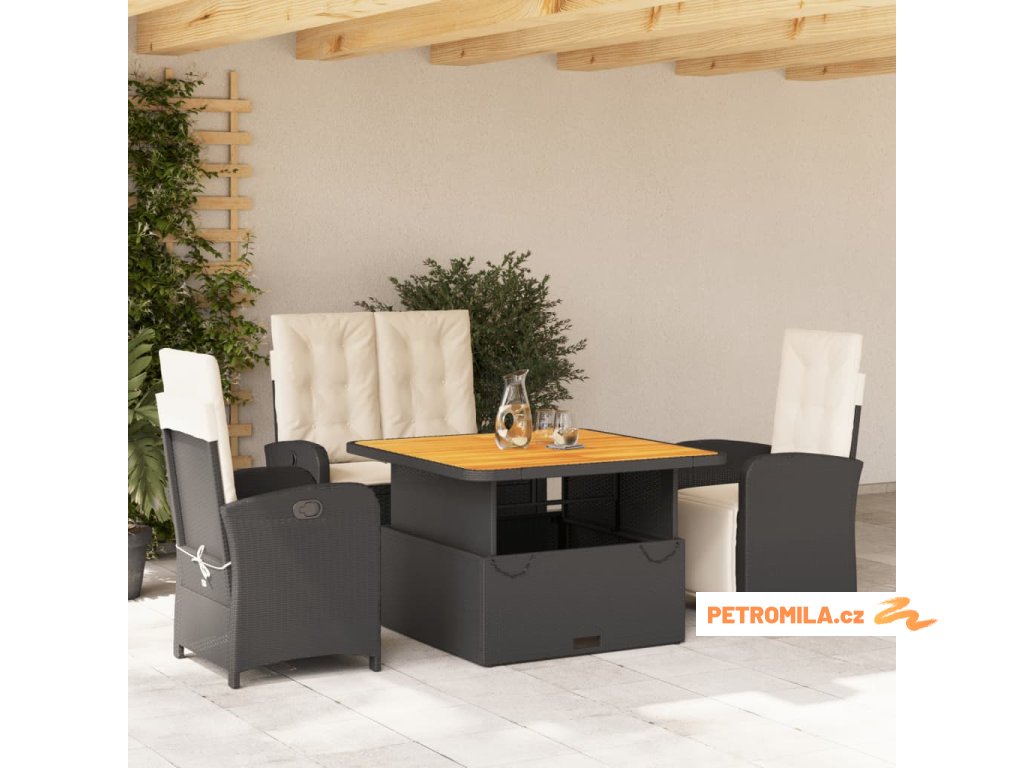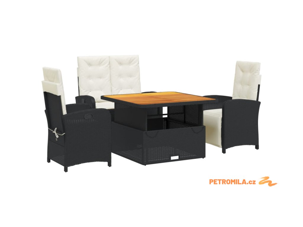 4dílný zahradní jídelní set s poduškami černý polyratan