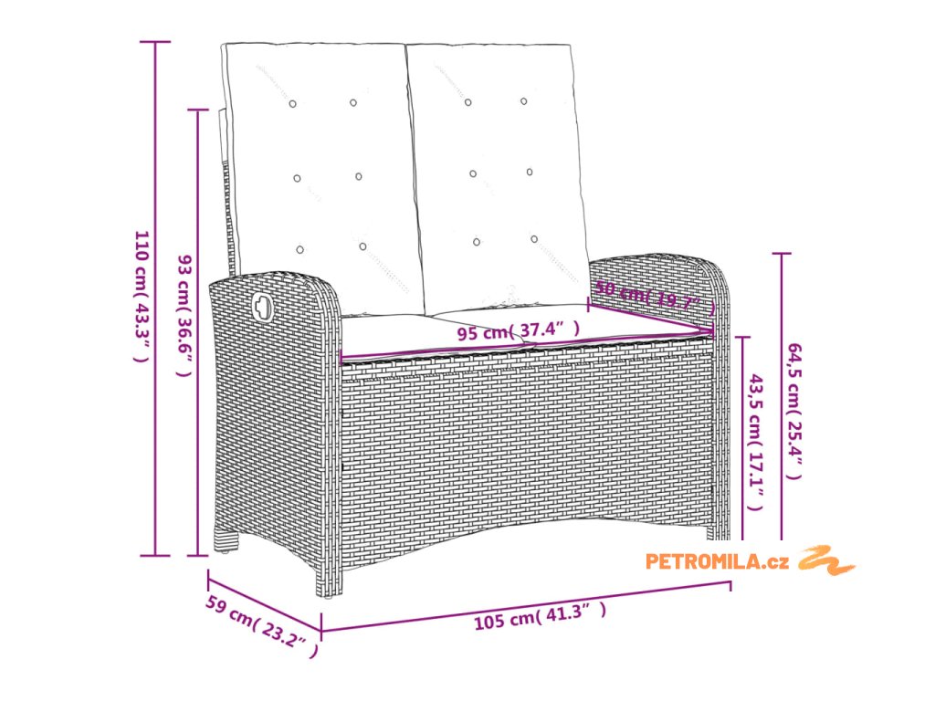 - Rozměry sezení: 105 x 59 x 93 cm (Š x H x V)