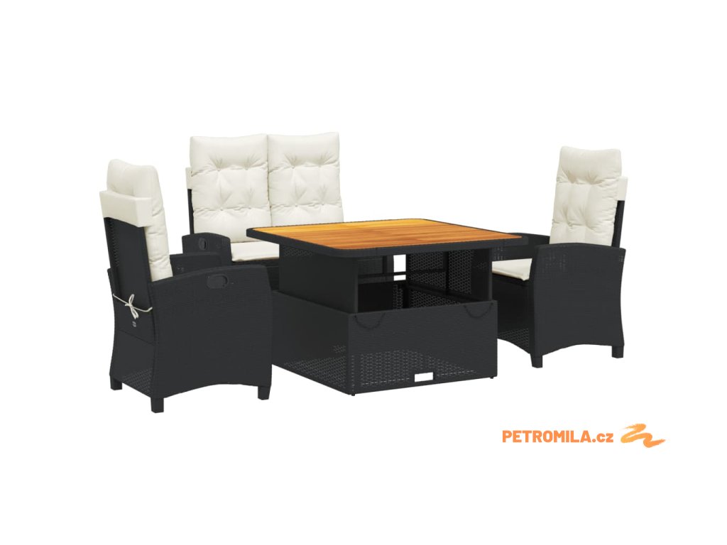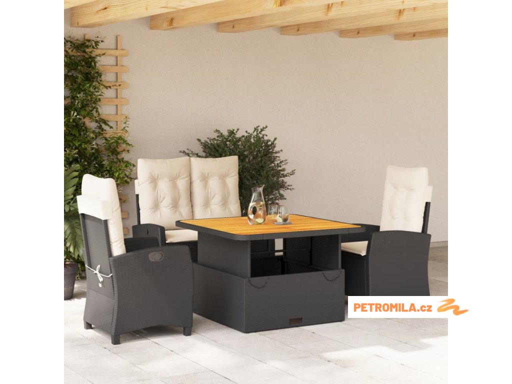 4dílný zahradní jídelní set s poduškami černý polyratan