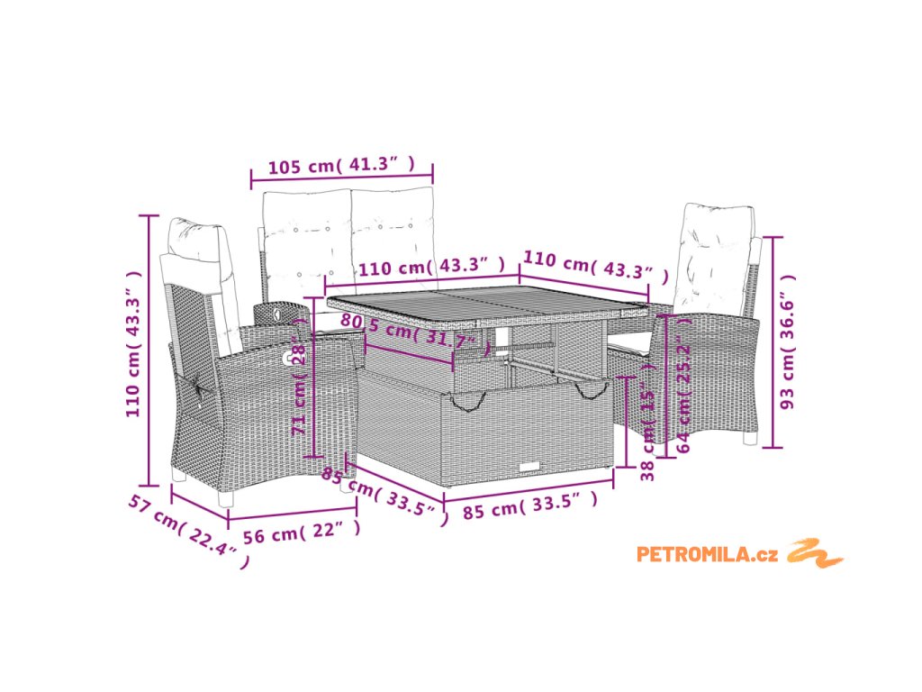 - Rozměry stolku: 110 x 110 x 40/71 cm (D x Š x V)