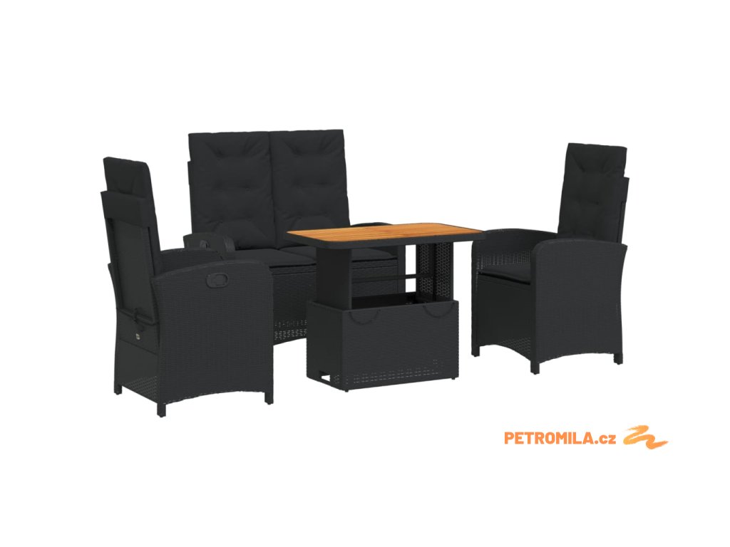 4dílný zahradní jídelní set s poduškami černý polyratan