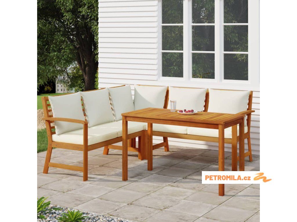4dílný zahradní jídelní set s poduškami masivní akácie