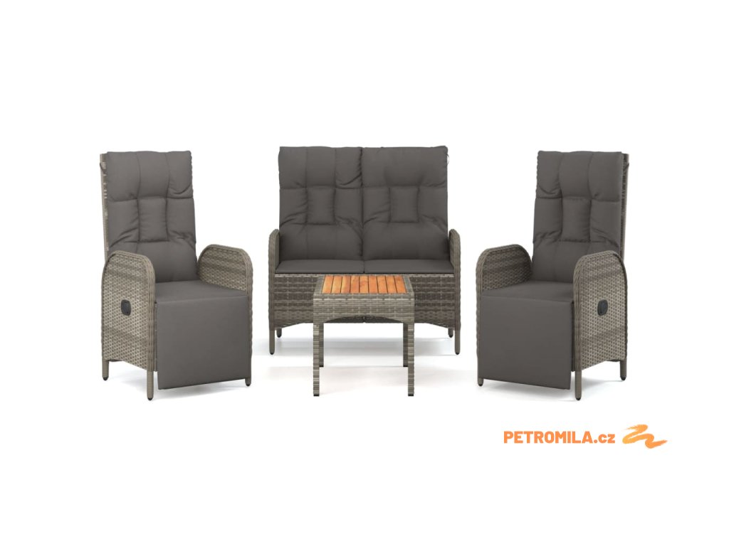 4dílný zahradní jídelní set s poduškami šedá polyratan