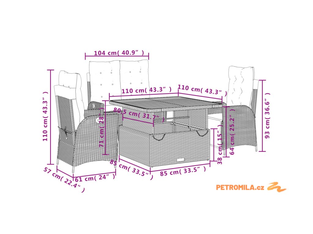 - Rozměry stolku: 110 x 110 x 40/71 cm (D x Š x V)