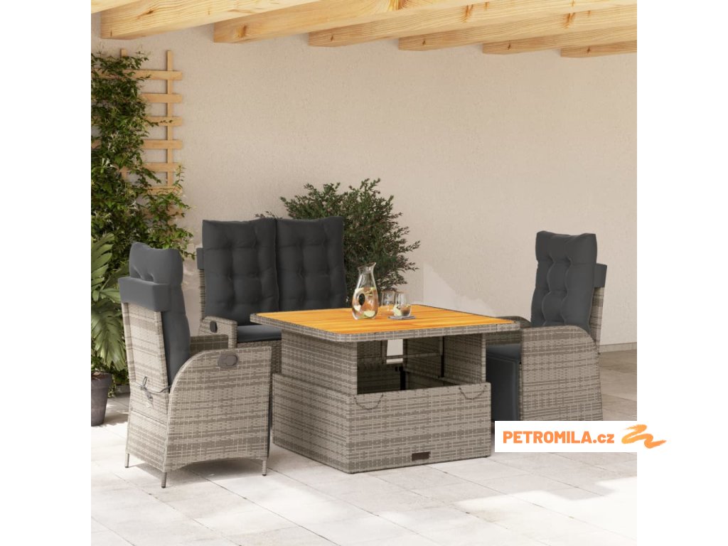 4dílný zahradní jídelní set s poduškami šedá polyratan