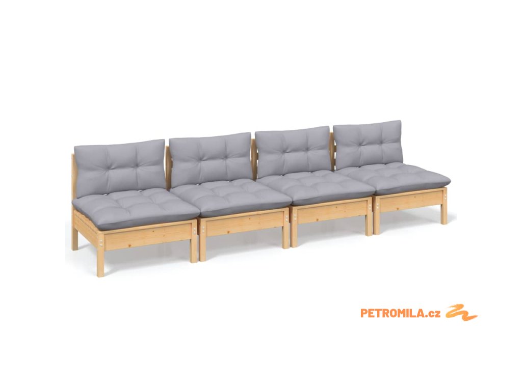 4místná zahradní pohovka s šedými poduškami masivní borovice