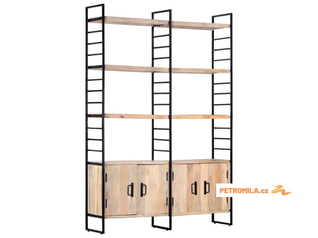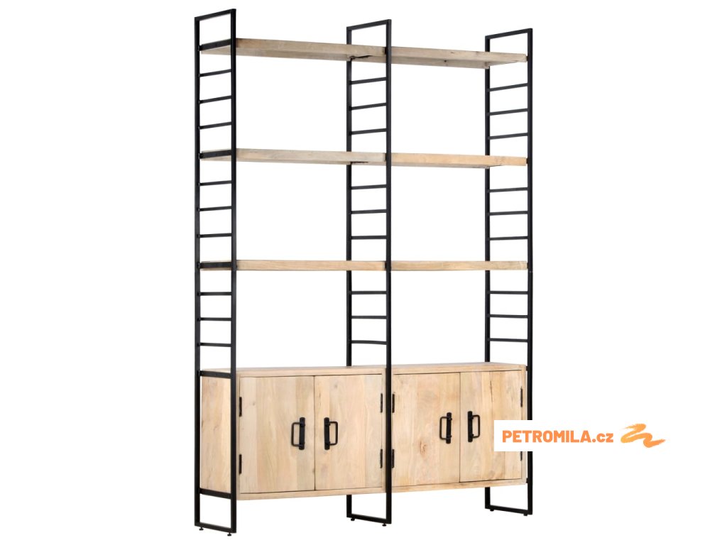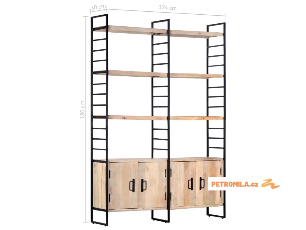 4patrová knihovna 124 x 30 x 180 cm masivní mangovníkové dřevo