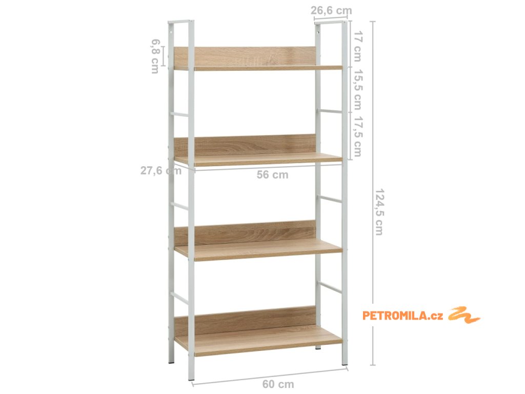 4patrová knihovna dub 60 x 27,6 x 124,5 cm kompozitní dřevo