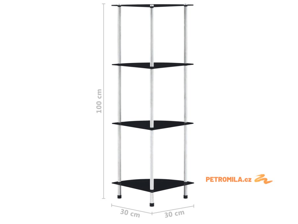 4patrová police černá 30 × 30 × 100 cm tvrzené sklo