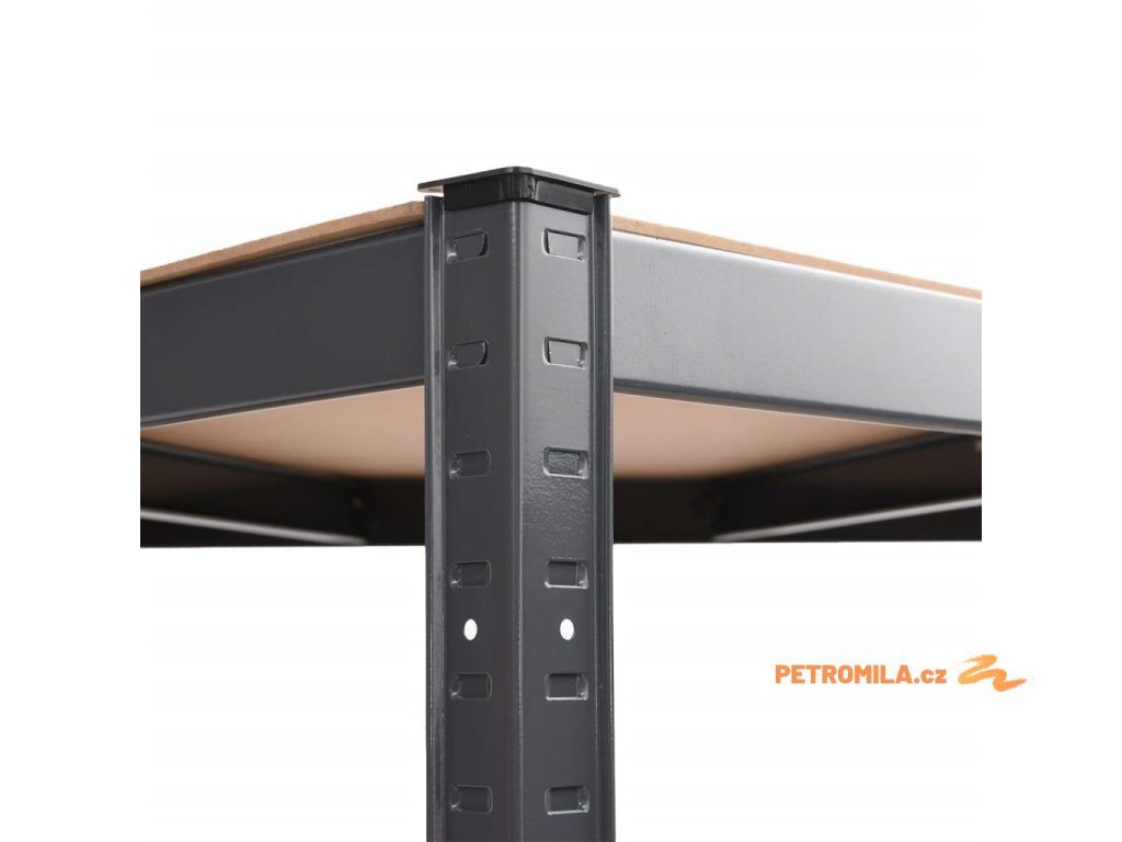 - Vysoká nosnost: Vzhledem k silnému materiálu, výztužným tyčím pod každou policí a konstrukci bezšroubových polic má regál výjimečně vysokou nosnost.
