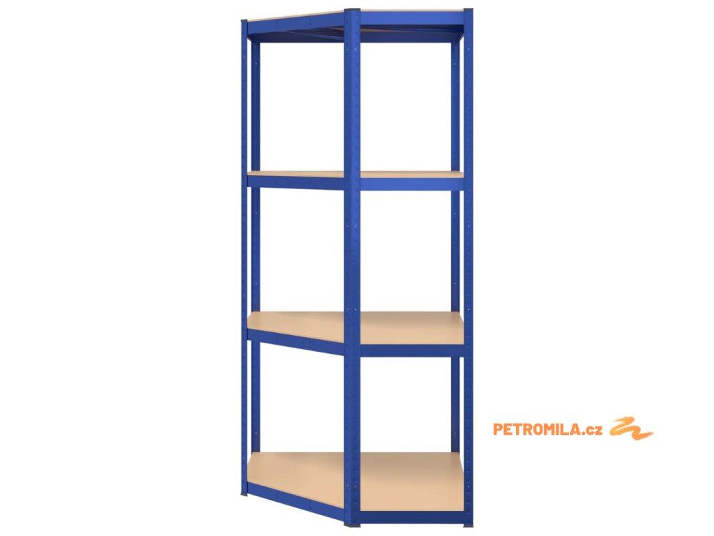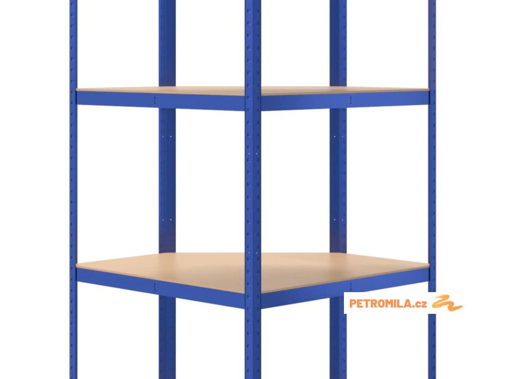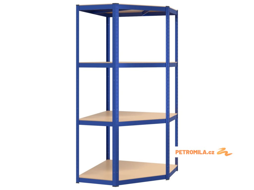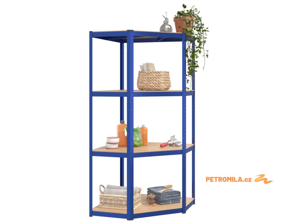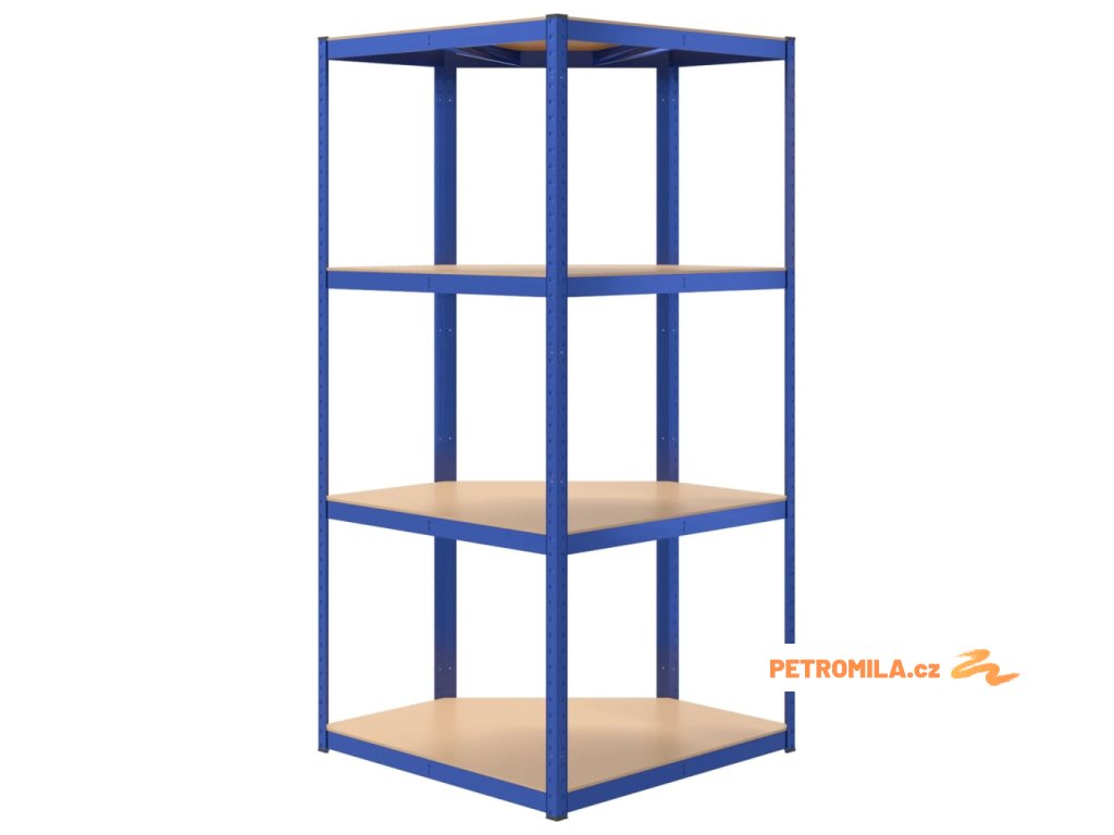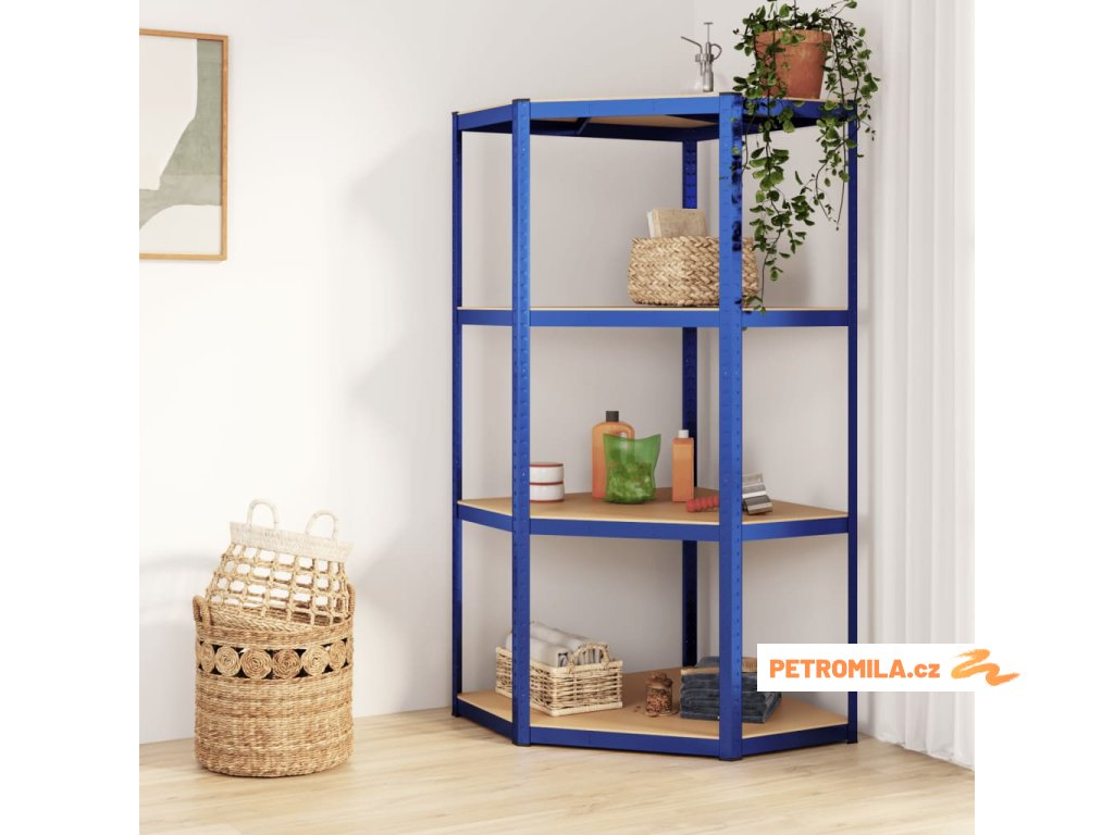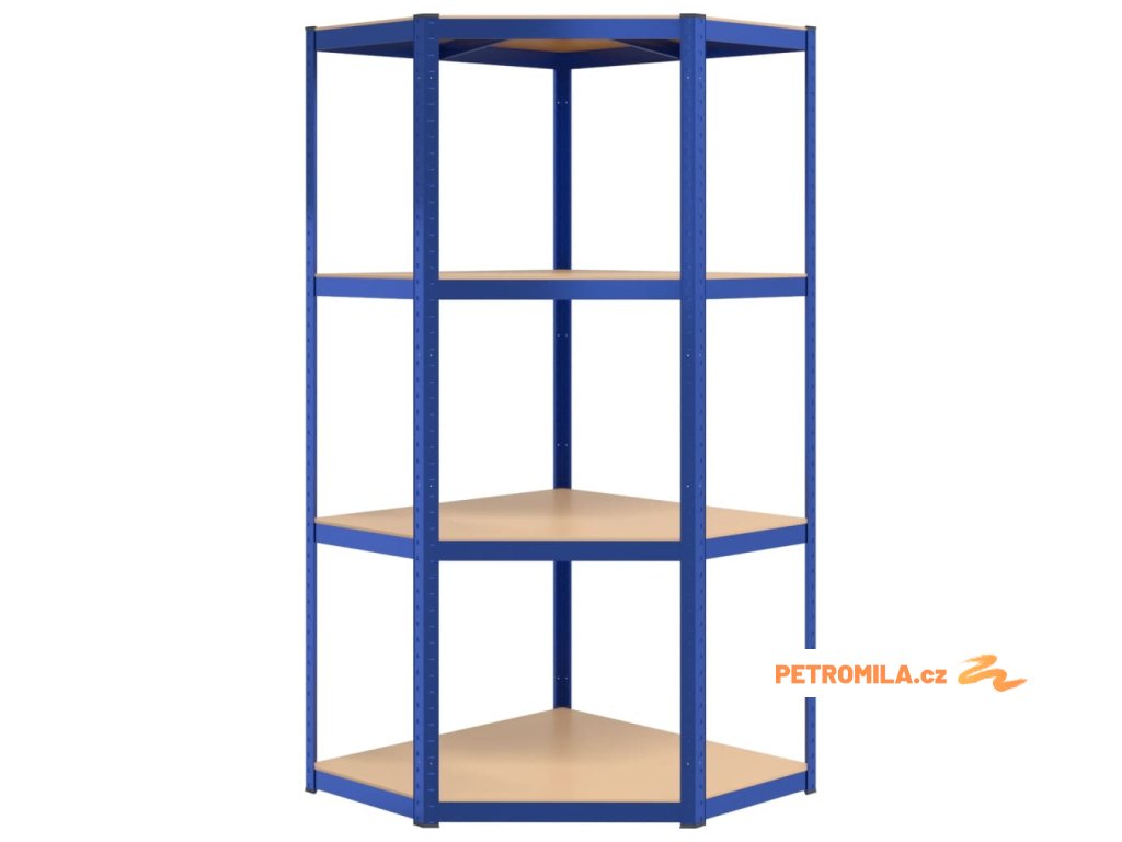 4patrový rohový regál modrý ocel a kompozitní dřevo