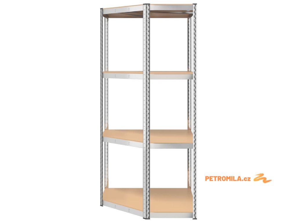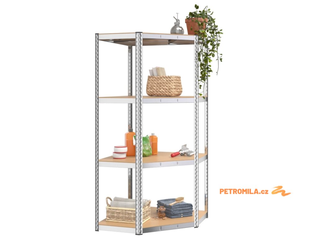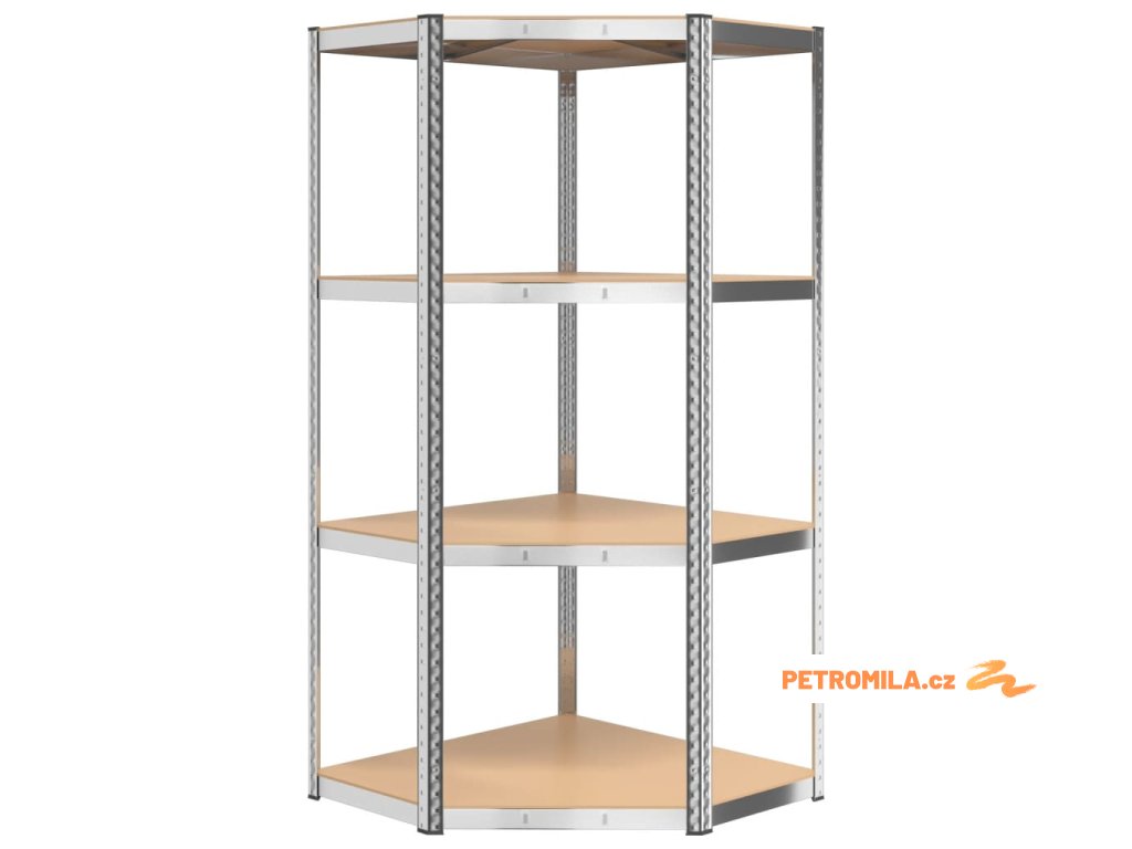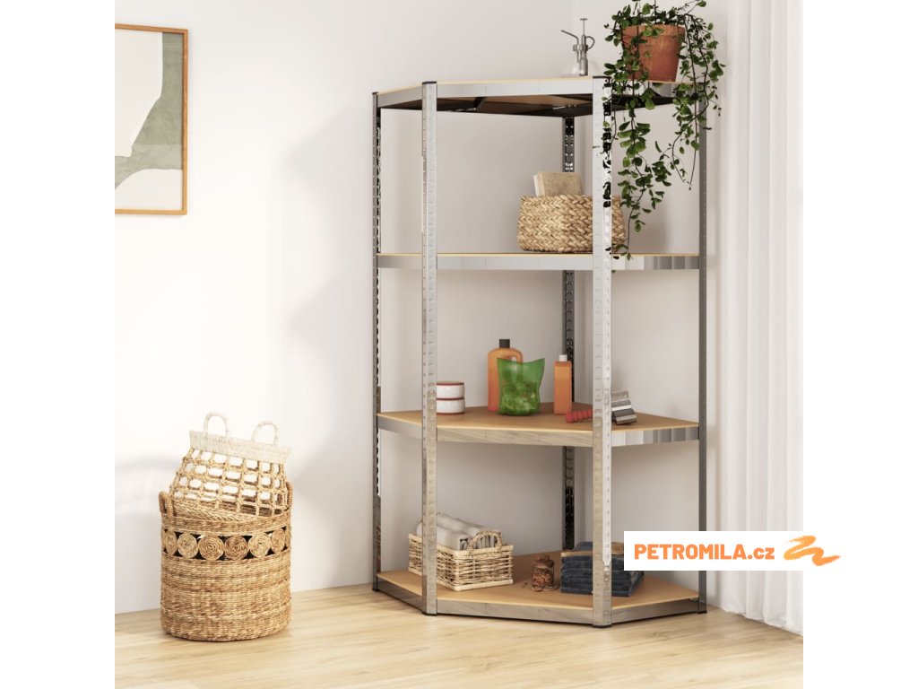 4patrový rohový regál stříbrný ocel a kompozitní dřevo