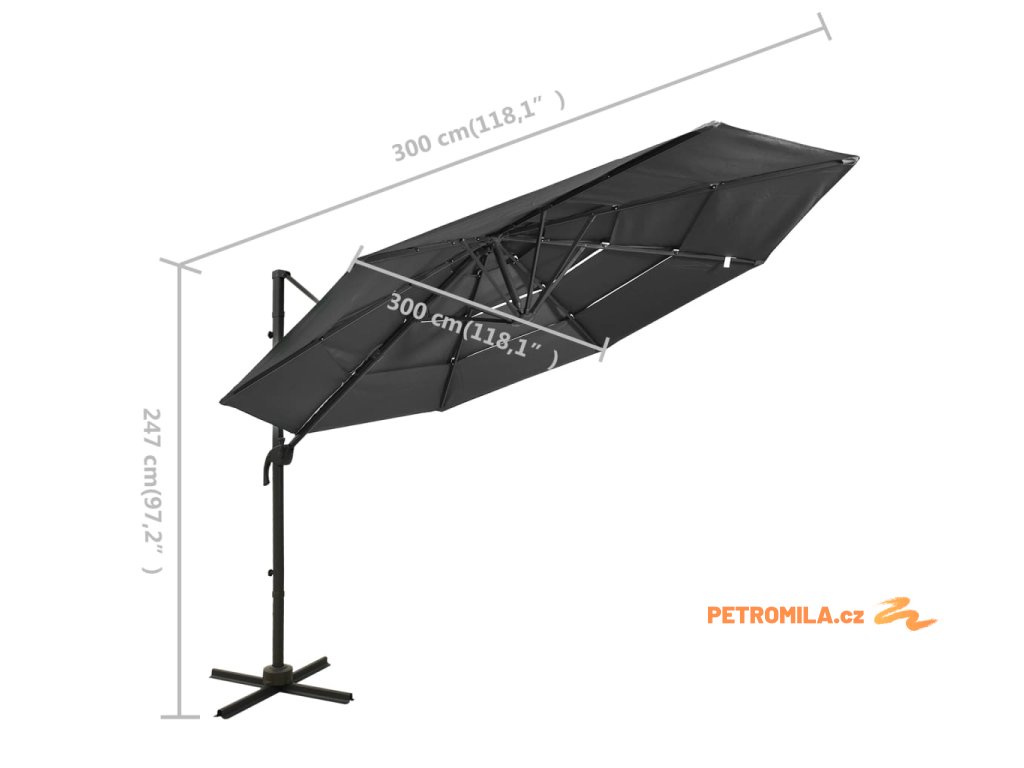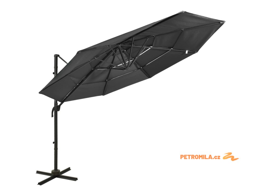 4stupňový zahradní slunečník s hliníkovou tyčí antracit 3 x 3 m