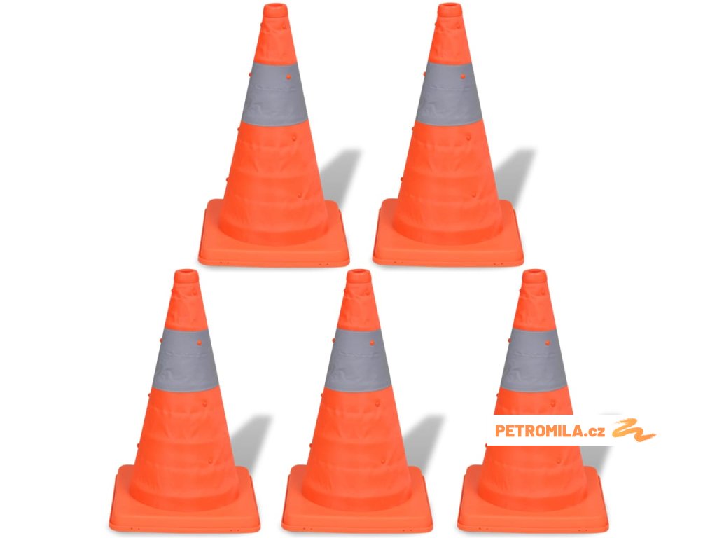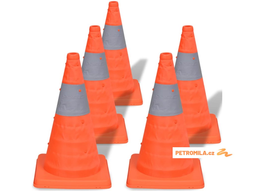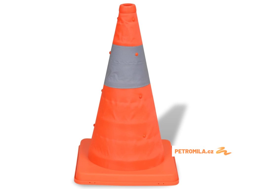 Skládací dopravní kužely mají zářivě oranžovou barvu a vysoce viditelný reflexní pruh, aby upozornily ostatní motoristy na vaše vozidlo umístěné na krajnici ve špatných světelných podmínkách. Tyto skládací dopravní kužely mají vyskakovací design, a mohou tak být snadno uschovány. K rozestavení těchto skládacích kuželů stačí vytáhnout jejich střed nahoru a rozmístit je v poloze, která bude pro ostatní účastníky silničního provozu viditelná.