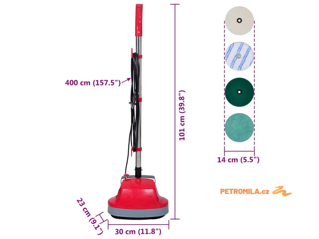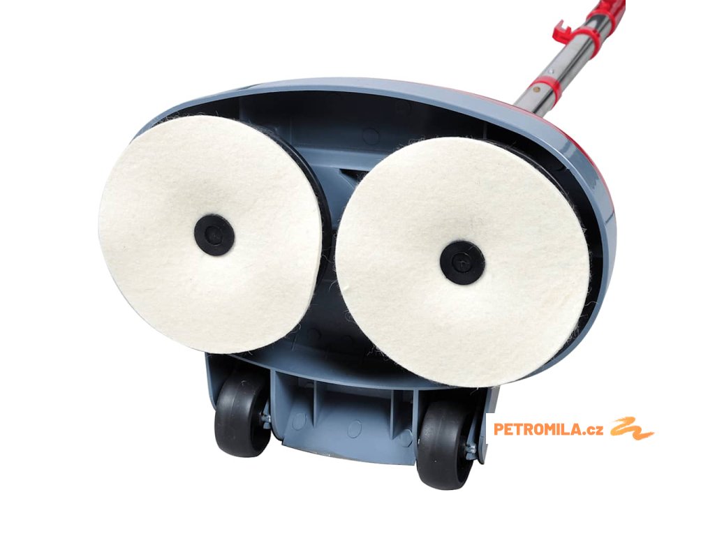 Tento stroj na čištění a leštění podlahy se pyšní 5 funkcemi: snadno drhne, vyhlazuje, voskuje, leští a čistí tvrdé podlahy, dřevěné podlahy i koberce. Tento čistič je obzvláště vhodný pro použití v malých obchodech / salonech, kde by se s normálně velkým strojem na čištění dalo jen těžko manévrovat mezi nábytkem a dalšími předměty. Je vybaven dvěma hlavami, které se otáčejí v rychlosti 400 rpm proti sobě, aby tak bylo dosaženo rychlého a efektivního úklidu.