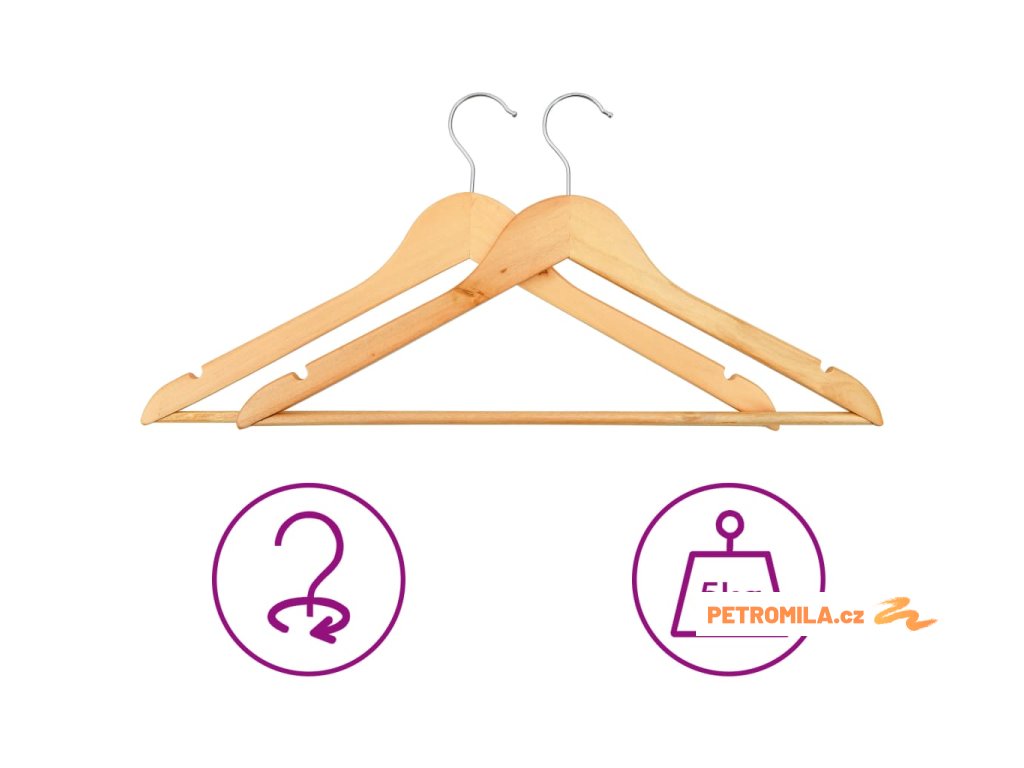 50 ks šatních ramínek protiskluzové tvrdé dřevo