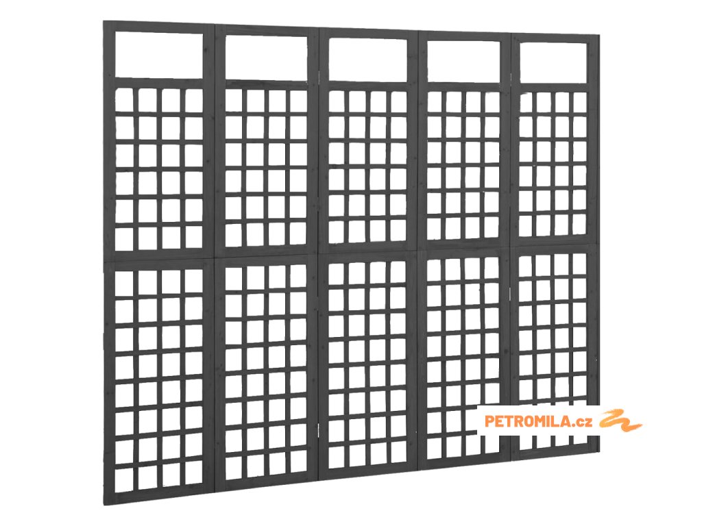 5dílná dělicí stěna / treláž masivní jedle černá 201,5 x 180 cm