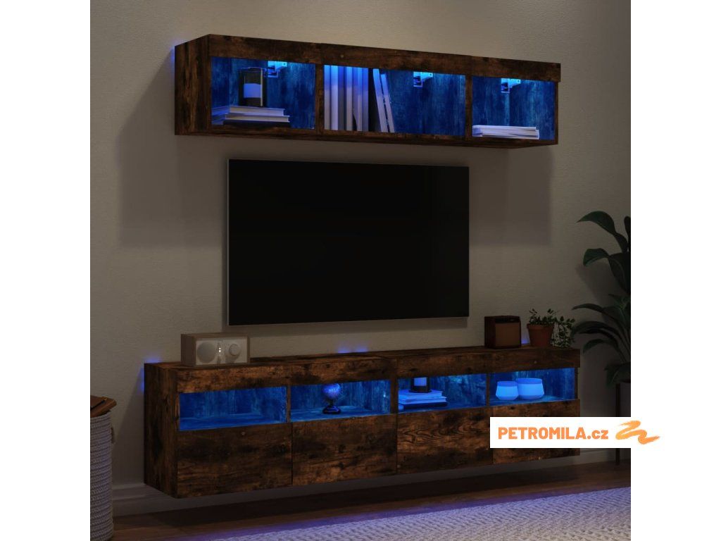 5dílná obývací stěna s LED kouřový dub kompozitní dřevo