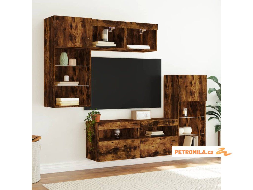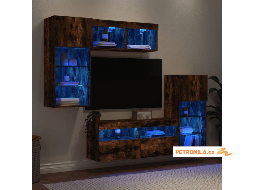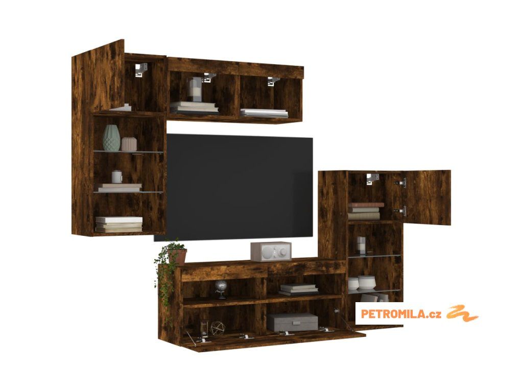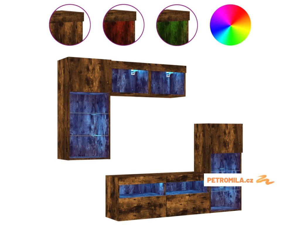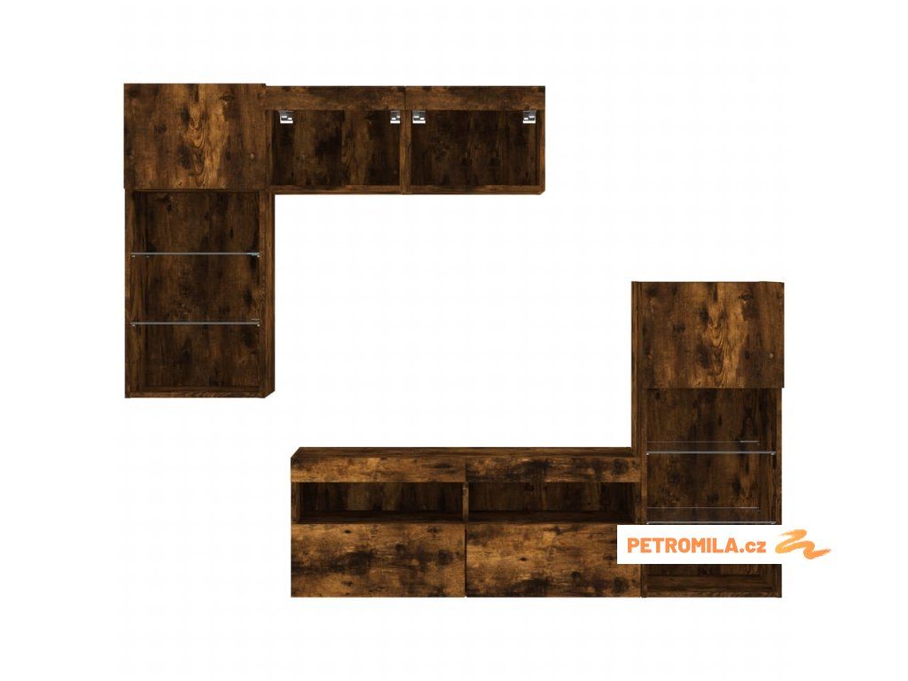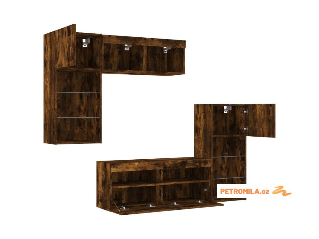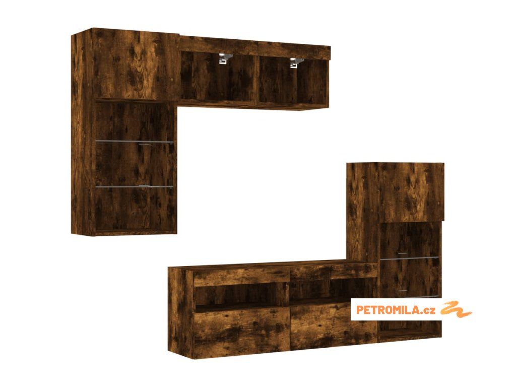 5dílná obývací stěna s LED kouřový dub kompozitní dřevo