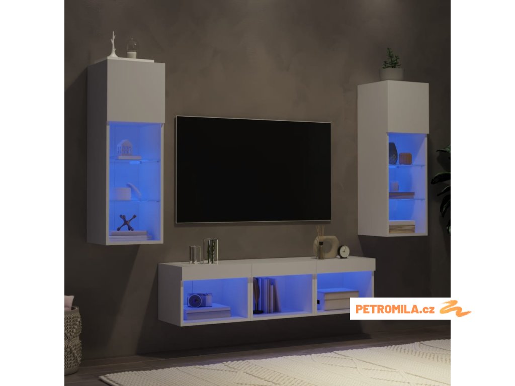 5dílná obývací stěna s LED osvětlením bílá kompozitní dřevo