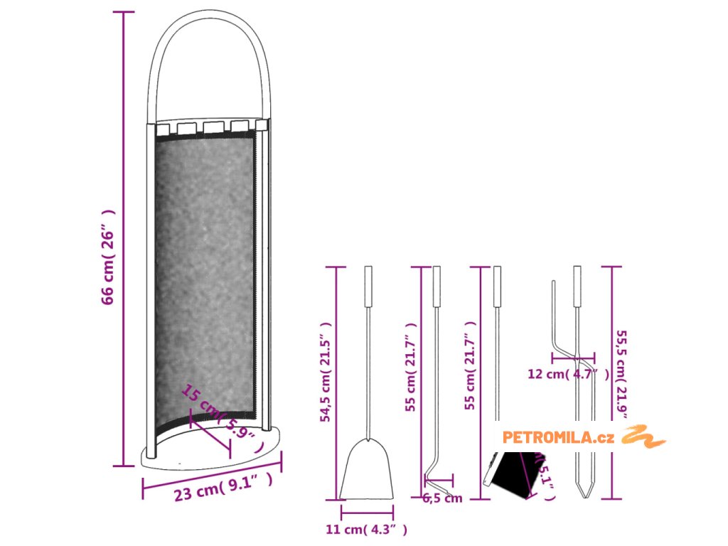 5dílná sada nářadí do krbu 23 x 15 x 66 cm ocel