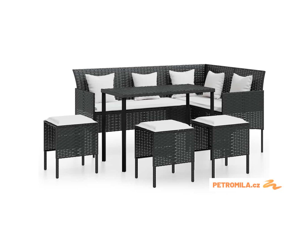 5dílná sedací souprava ve tvaru L s poduškami polyratan černá