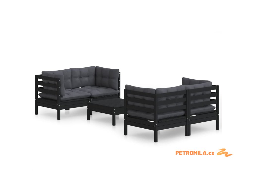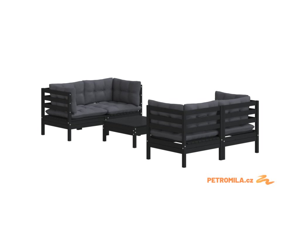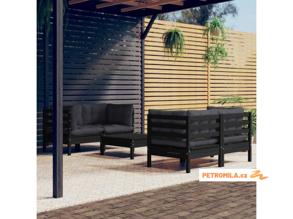 5dílná zahradní sedací souprava a antracitové podušky borovice