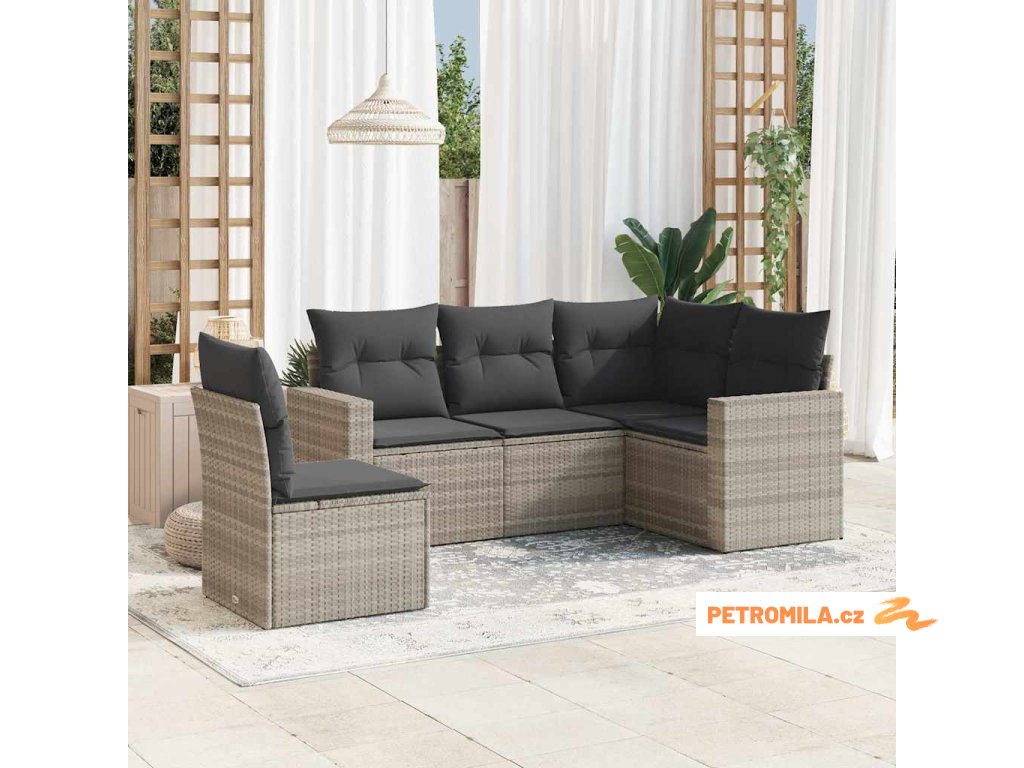 5dílná zahradní sedací souprava a podušky světle šedá polyratan