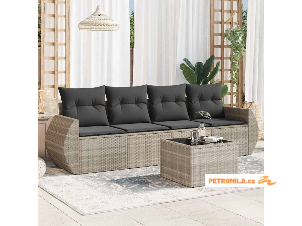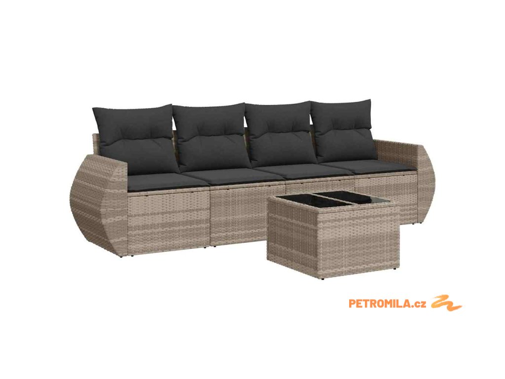 5dílná zahradní sedací souprava a podušky světle šedá polyratan