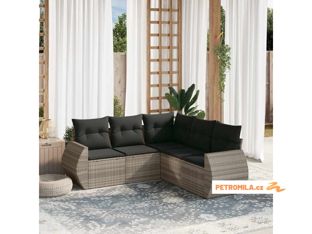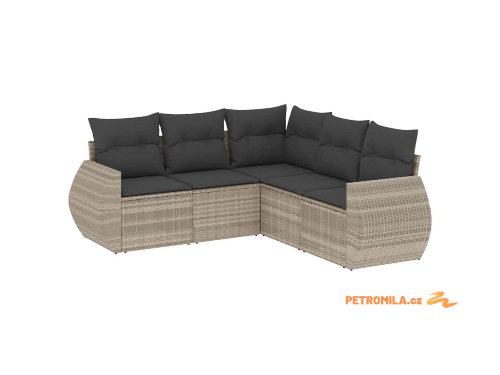 5dílná zahradní sedací souprava a podušky světle šedá polyratan