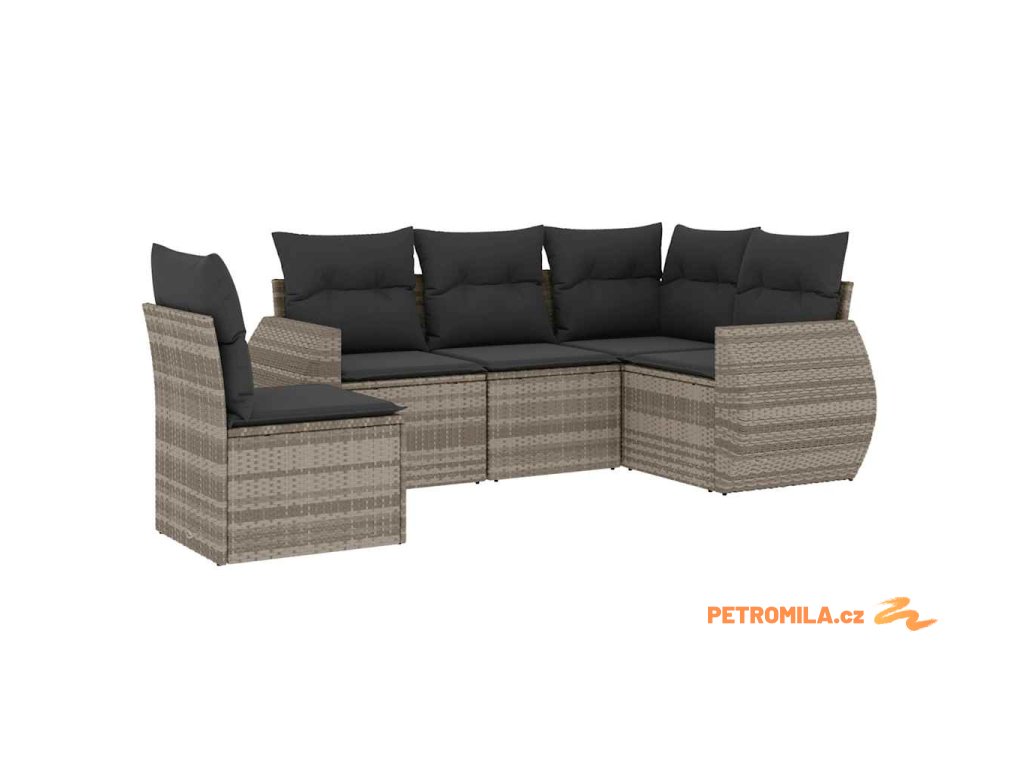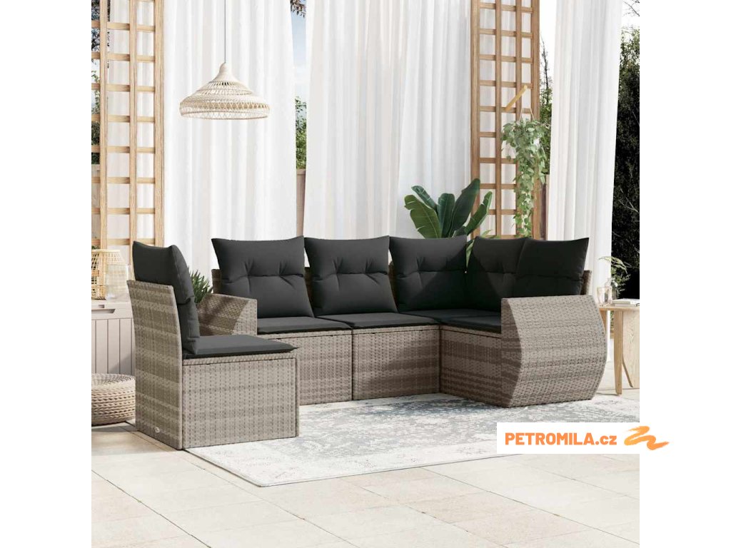 5dílná zahradní sedací souprava a podušky světle šedá polyratan
