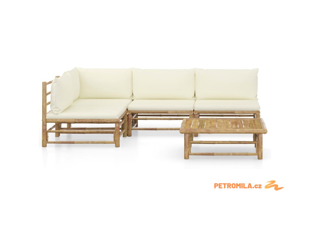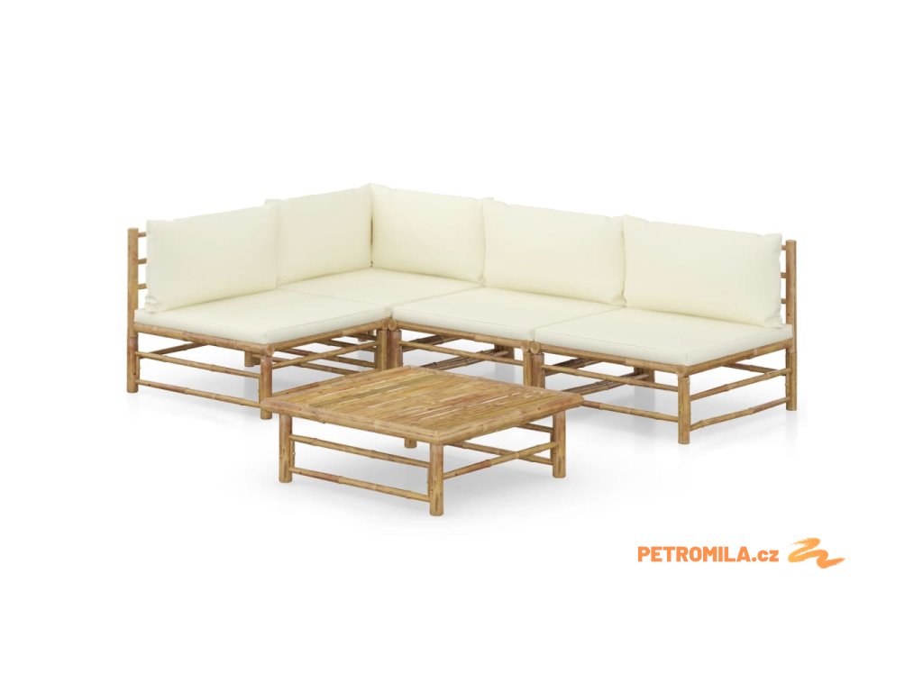 5dílná zahradní sedací souprava + krémově bílé podušky bambus
