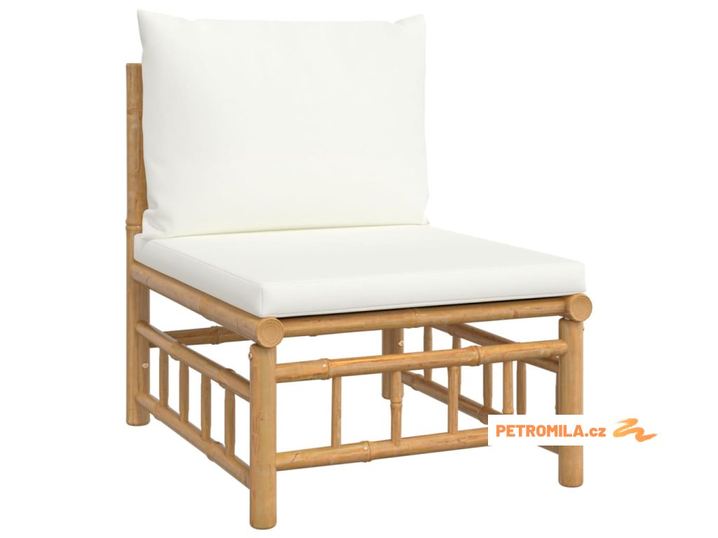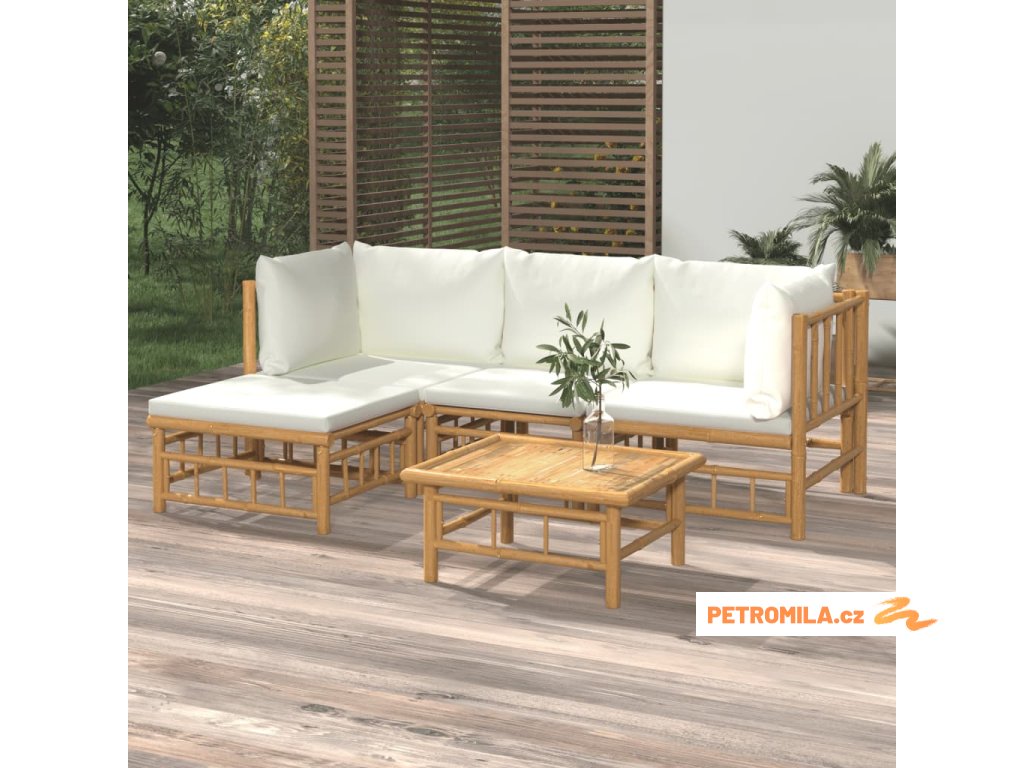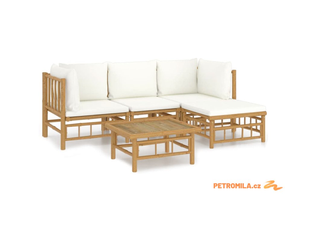 5dílná zahradní sedací souprava krémově bílé podušky bambus