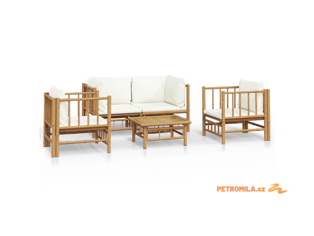 5dílná zahradní sedací souprava krémově bílé podušky bambus