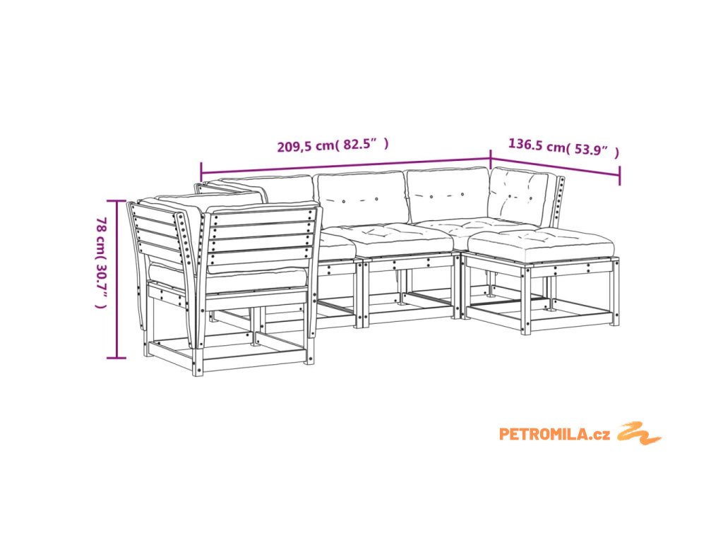 5dílná zahradní sedací souprava podušky voskově hnědá borovice
