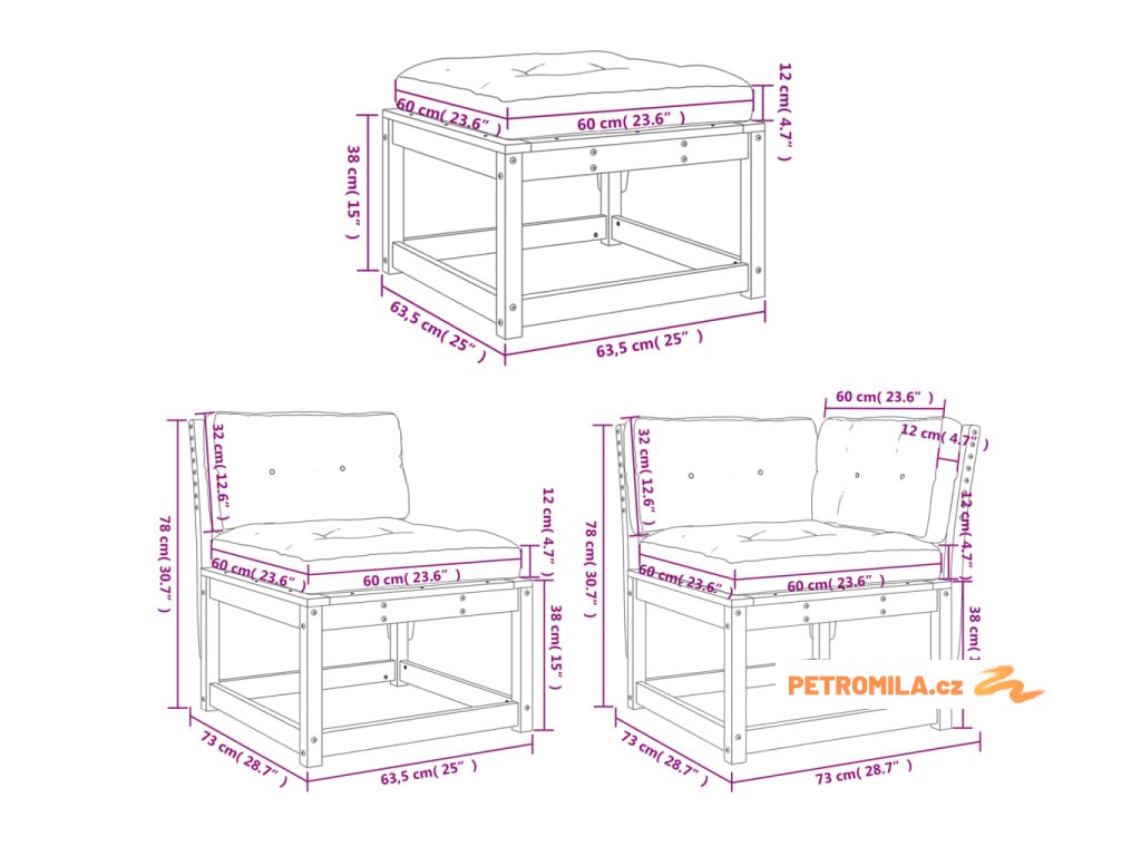 - Rozměry podušky na sedák: 60 x 60 x 12 cm (D x Š x T)