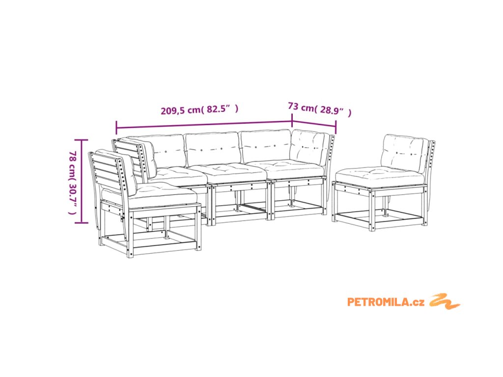 5dílná zahradní sedací souprava podušky voskově hnědá borovice