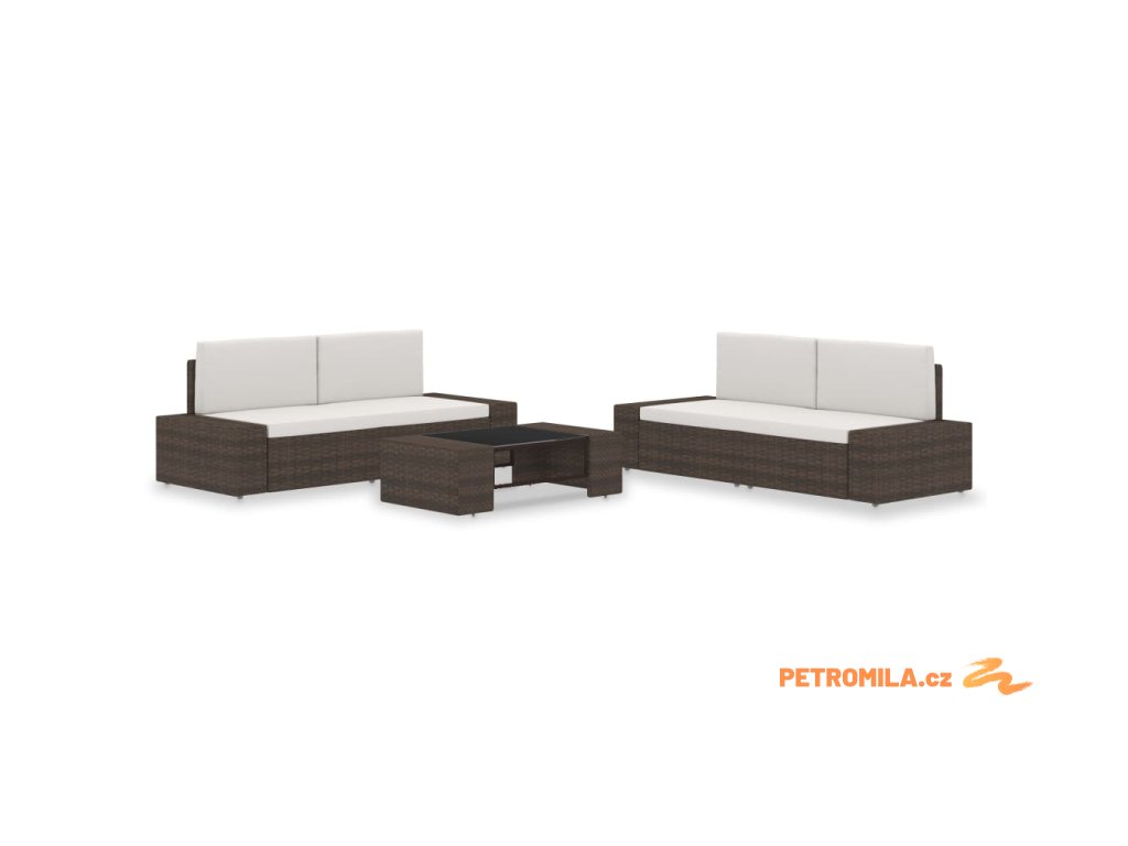 - Materiál: PE ratan, textil (100% polyester), práškově lakovaná ocel, tvrzené sklo