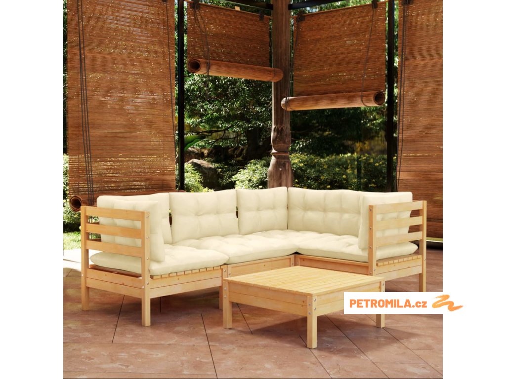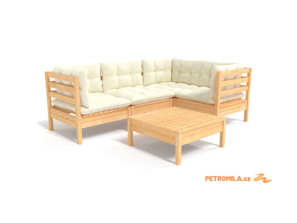 5dílná zahradní sedací souprava s krémovými poduškami borovice