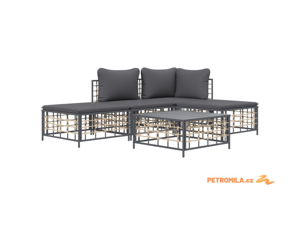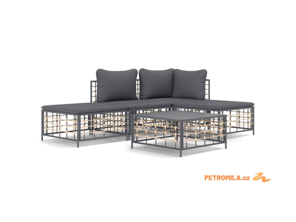 5dílná zahradní sedací souprava s poduškami antracit polyratan