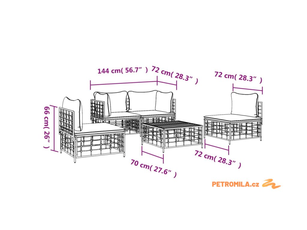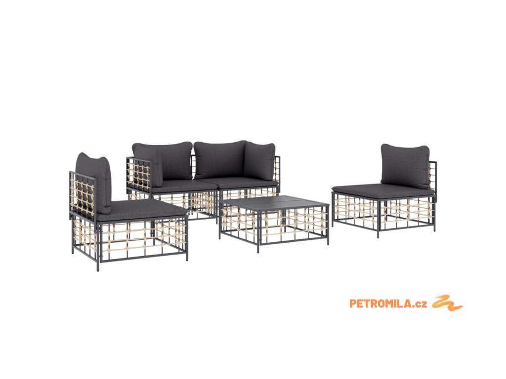 5dílná zahradní sedací souprava s poduškami antracit polyratan