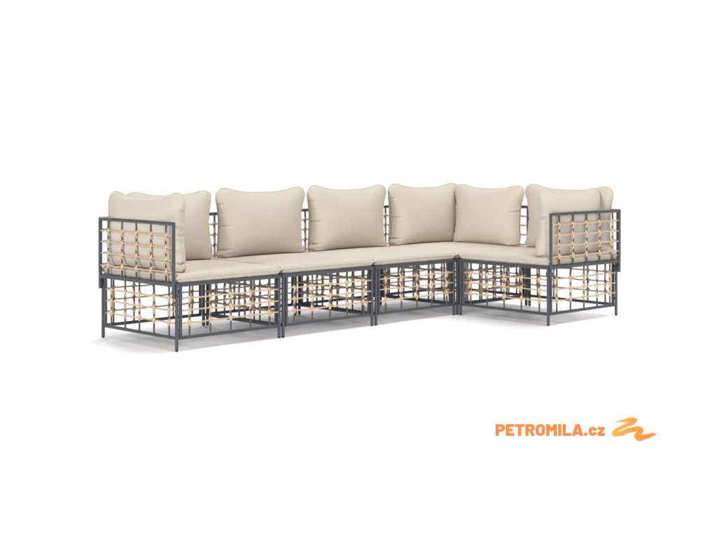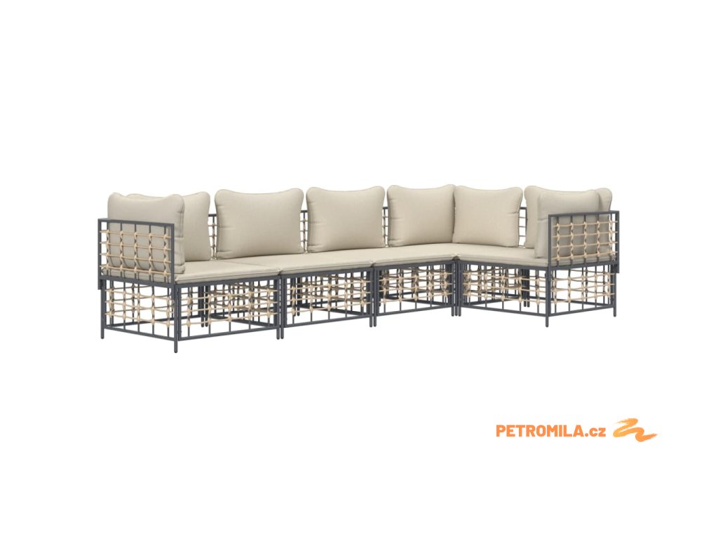 5dílná zahradní sedací souprava s poduškami antracit polyratan