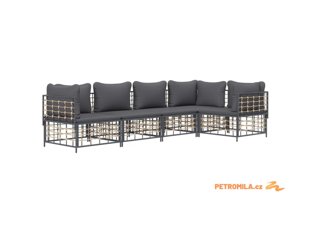 5dílná zahradní sedací souprava s poduškami antracit polyratan