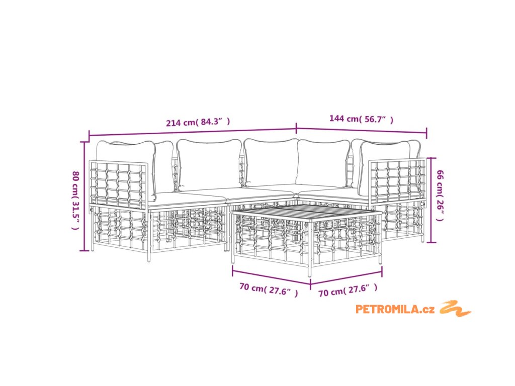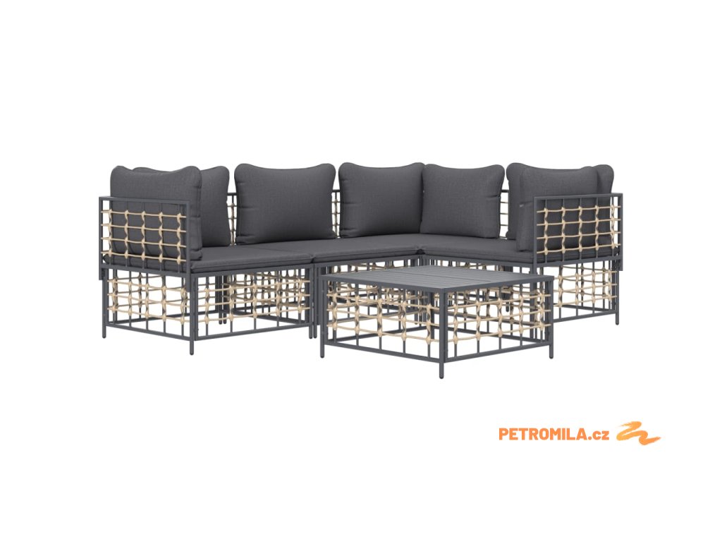 5dílná zahradní sedací souprava s poduškami antracit polyratan