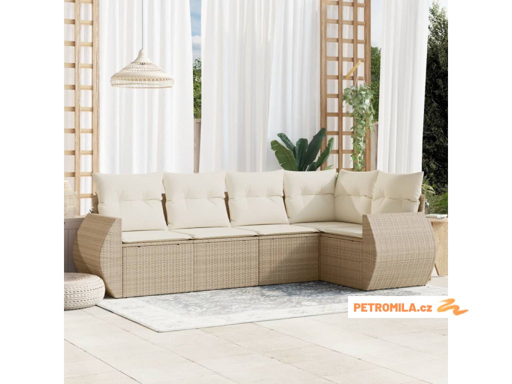 5dílná zahradní sedací souprava s poduškami béžová polyratan