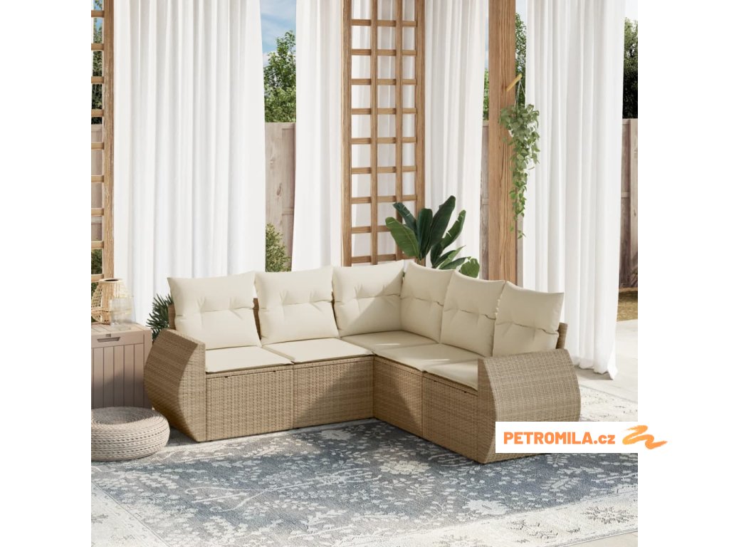 5dílná zahradní sedací souprava s poduškami béžová polyratan