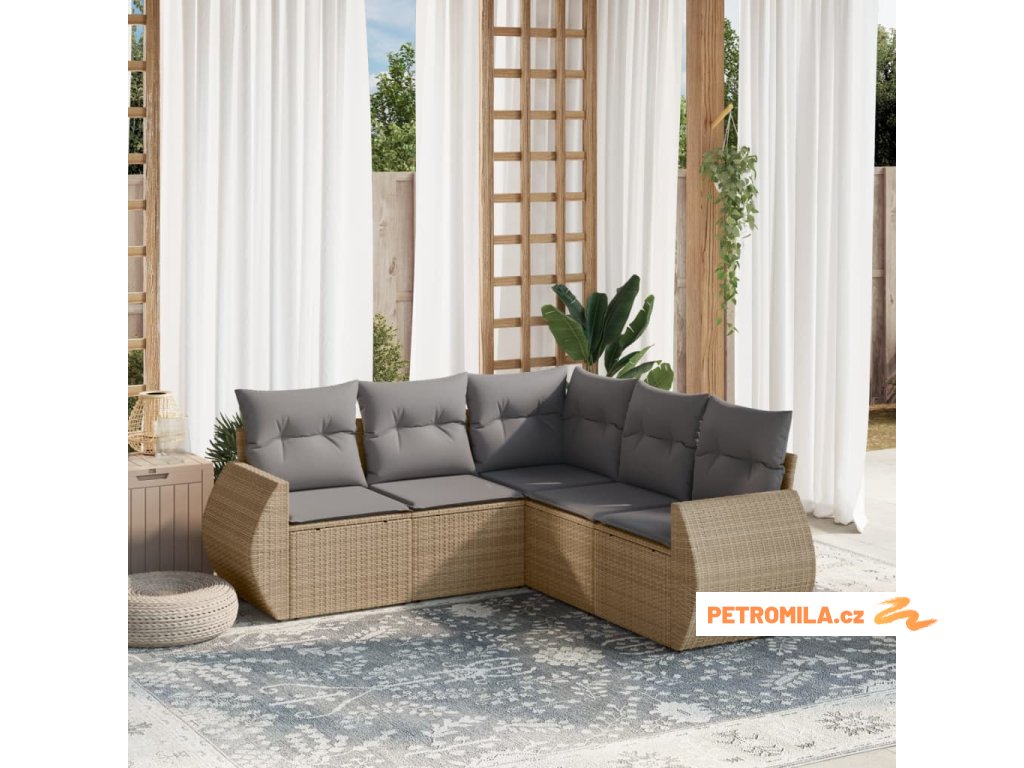 5dílná zahradní sedací souprava s poduškami béžová polyratan